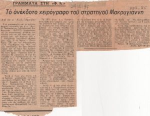 Το ανέκδοτο χειρόγραφο του στρατηγού Μακρυγιάννη