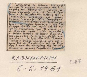 Αποκόμμα εφημερίδας σχετικά με την έκθεση της Ι.Σπητέρη στο Μιλάνο