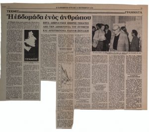 «Η εβδομάδα ενός ανθρώπου. Επτά αθηναϊκές ημέρες γεμάτες από την δημιουργία του συνθέτη και αρχιτέκτονα Γιάννη Ξενάκη»