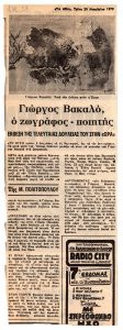 Γιώργος Βακαλό, ο ζωγράφος-ποιητής. Έκθεση της τελευταίας δουλειάς του στην ‘Ώρα’