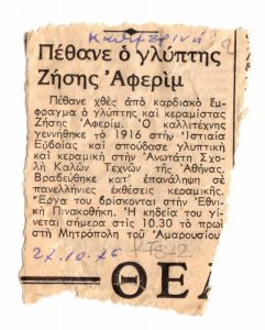 Πέθανε ο γλύπτης Ζήσης Αφερίμ