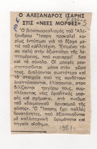 Ο Αλέξανδρος Ίσαρης στις ‘Νέες Μορφές’