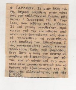 Κριτική έκθεσης του Φ. Τάρλοου στην Γκαλερί “Ώρα”