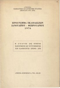 Τέχνη Μακεδονική Καλλιτεχνική Εταιρεία: Πρόγραμμα Εκδηλώσεων Ιανουαρίου-Φεβρουαρίου 1976