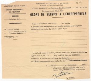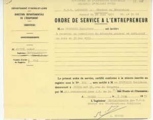 Δημόσιο έγγραφο από την διέυθυνση της νομαρχίας του Indre et Loire στην Ι. Σπητέρη