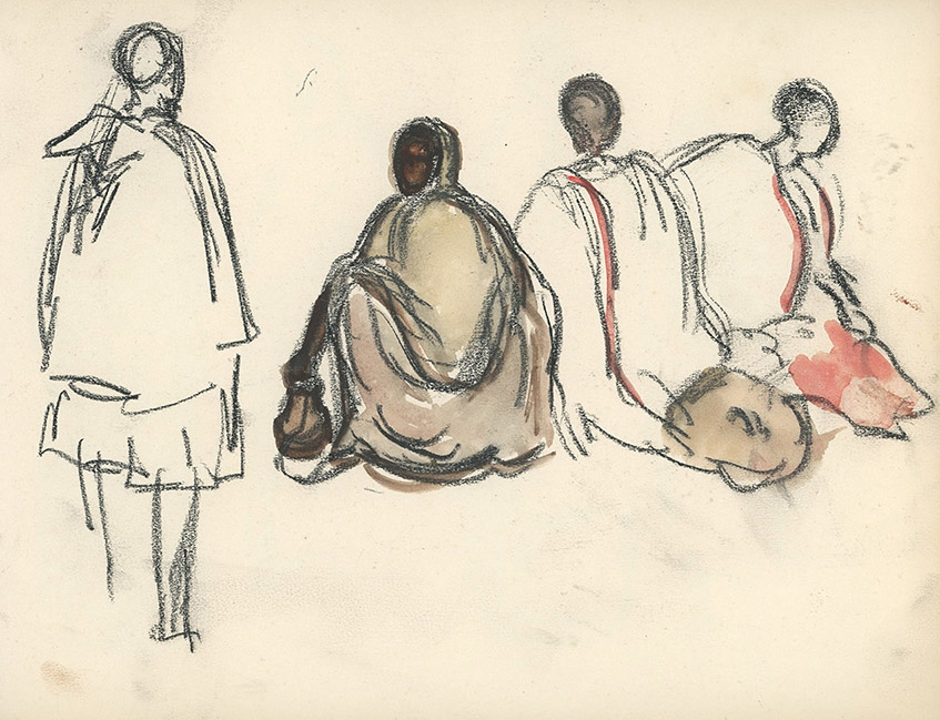 Pencil, charcoal and watercolor on paper