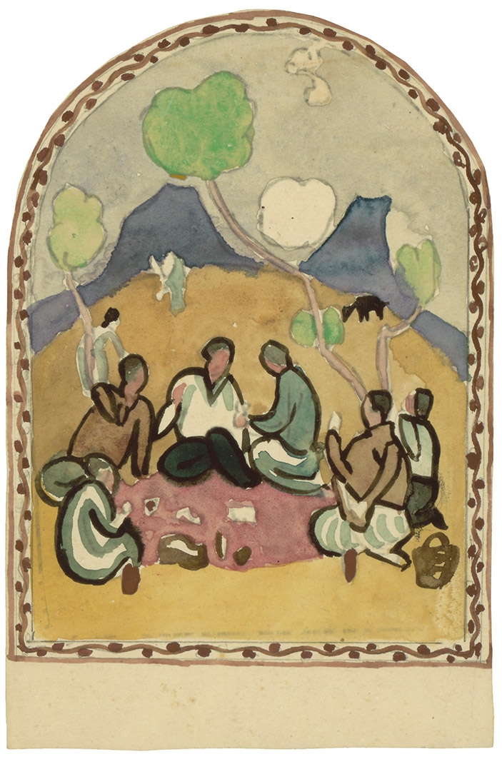 Konstantinos Parthenis (1878 - 1967) ; Fotis Kontoglou (1895 - 1965) ; Michalis Tompros (1889 - 1974) ; Dimitrios Galanis (1879 - 1966) ; Konstantinos Maleas (1879 - 1928) ; Spyros Papaloukas (1892 - 1957) ; Yannis Mitarakis (1898 - 1963) ; Τεν Φλωριάς (1897 - 1969) ; Σοφία Λασκαρίδου (1876 - 1965) ; Θάλεια Φλωρά-Καραβία (1871 - 1960) ; Yannis Kefallinos (1894 - 1957) ; Γεώργιος ο Αθηναίος Δημητριάδης (1880 - 1941) ; Νικόλαος Δραγούμης ; Zevgolis Grigorios (1886 - 1950) ; Lykourgos Kogevinas (1887 - 1940) ; Δημήτριος Μπισκίνης ; Γεώργιος Οικονόμου