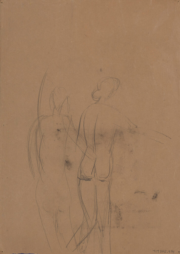 Female figure on a beach (recto) / Figure studies (verso)