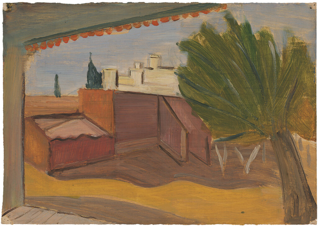 Landscape with buildings and palm tree