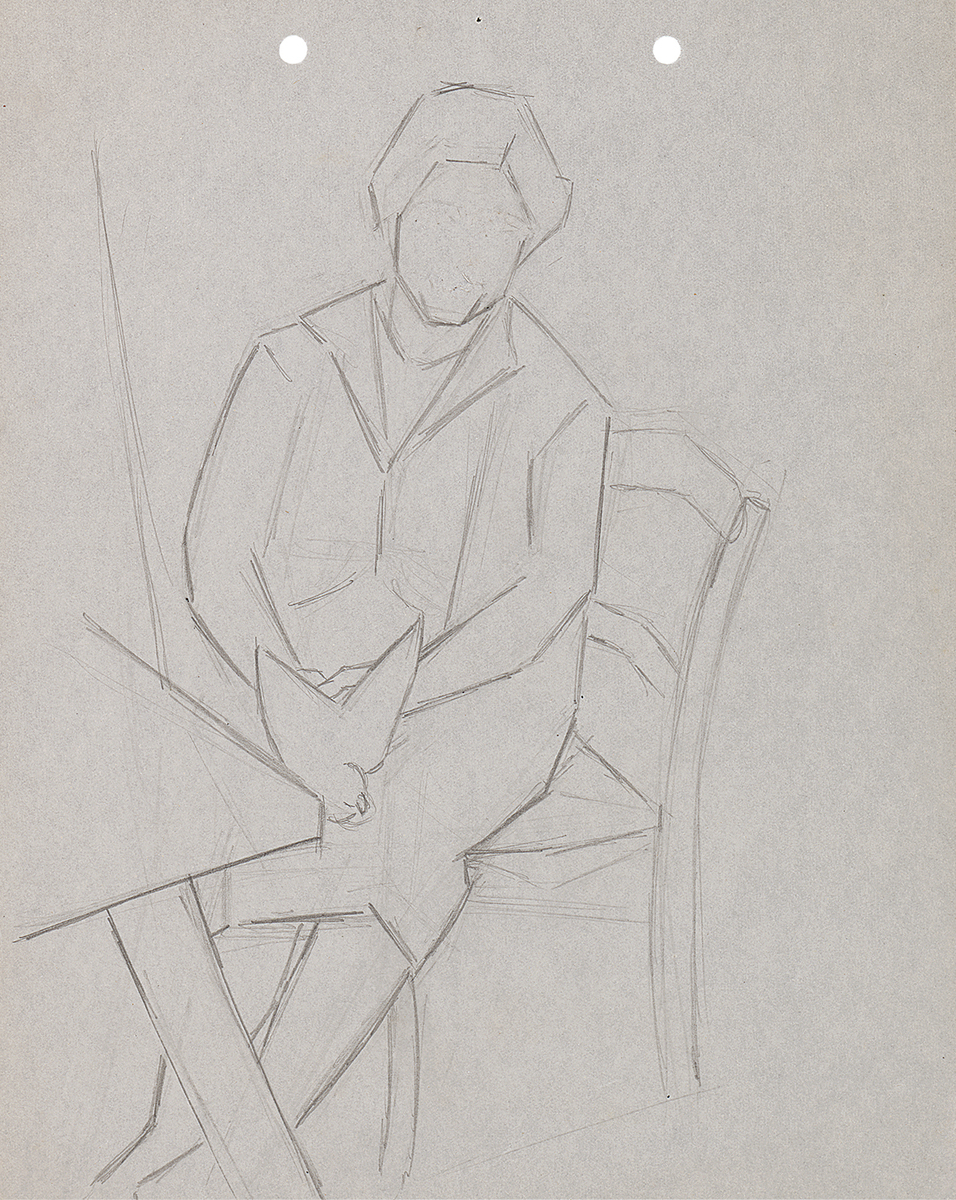 Pencil drawing on paper, featuring two holes (block-style) at the top