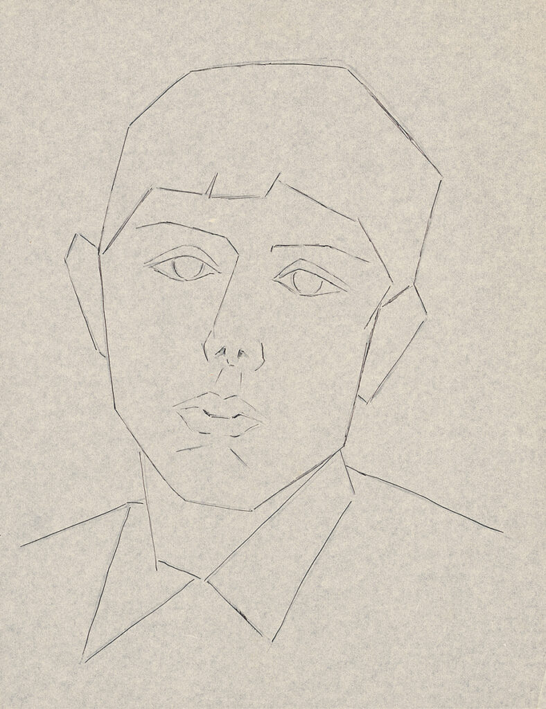 Pen drawing on tracing paper (based on a pre-existing pencil sketch)