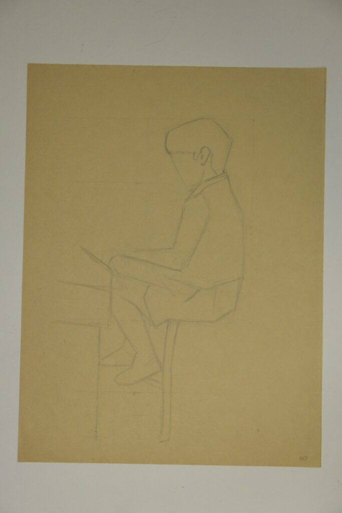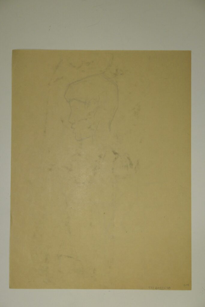 Seated child at desk (in profile to left) (recto). Boy head test in profile (verso)