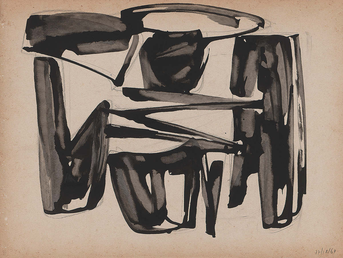 Ink and pencil on cardboard