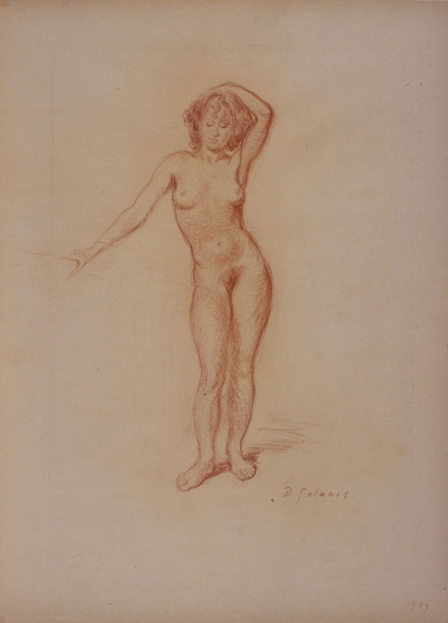 Nude with raised hand