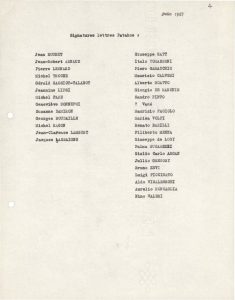 Boudaille Georges (1925 - 1991) ; Vaso Katraki (1914 - 1988) ; Lassaigne Jacques (1911 - 1983) ; Michel Troche ; Jean Bouret (1914 - 1979) ; Michel Fare ; Gerald Gassiot-Talabot ; Ragon Michel (1924 - 2020) ; Giulio Carlo Argan (1909 - 1992) ; Genevieve Bonnefoi ; Renato Barilli (1935) ; Maurizio Calvesi (1954) ; Jean-Clarence Lambert ; Pierre Leonard ; Bruno Zevi ; Palma Bucarelli (1910 - 1998) ; Jean-Robert Arnaud (1920 - 2007) ; Filiberto Menna ; Alberto Boatto (1929 - 2017) ; Italo Tomassoni ; Jeanine Lipsi ; Giuseppe Gatt ; Suzanne Damiron ; Piero Gamacchio ; Giorgio De Marchis ; Sandro Pinto ; Maurizio Fagiolo ; Marisa Volpi ; Giuseppe De Logy ; Jullio Gregory ; Luigi Piccinato ; Aldo Visalberghi ; Aurelio Roncaglia ; Nino Valeri