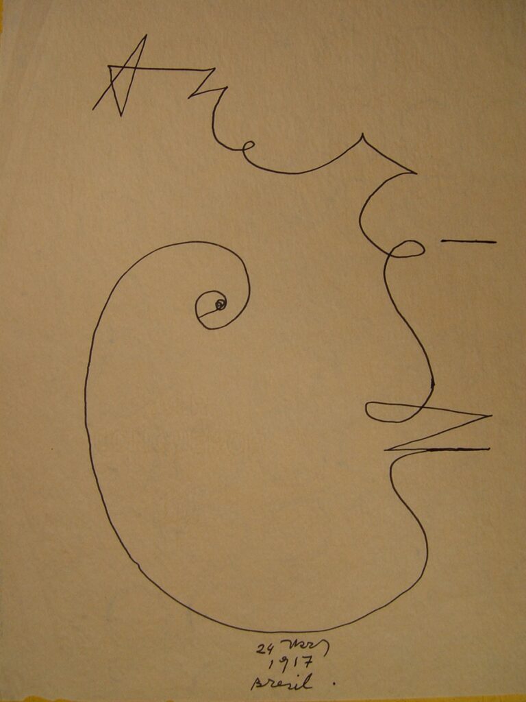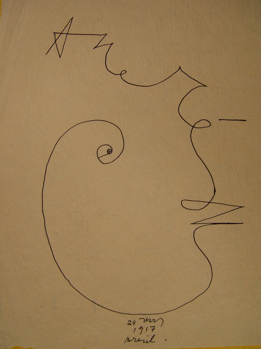 It shows a person in profile, smoking. The plan is not realistic. Subtractive performance.