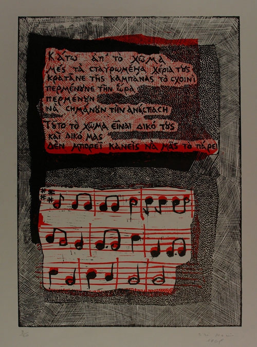 Lyrics from Romiosyni and excerpt from scores. The verses in Byzantine-palaeographic script.
