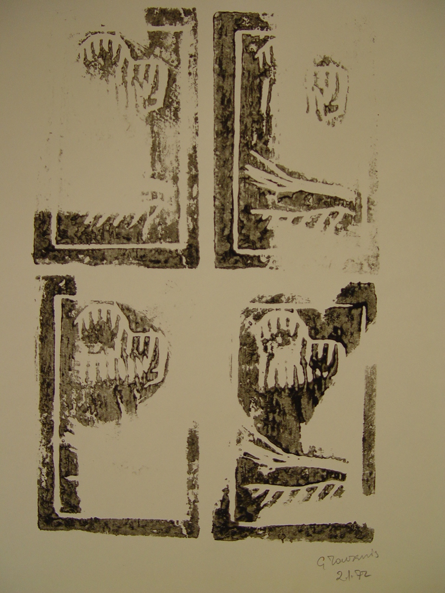 The same format is repeated 4 times, printed each time with a different ink distribution and density. The fourth print in the second row is the most intense and complete.