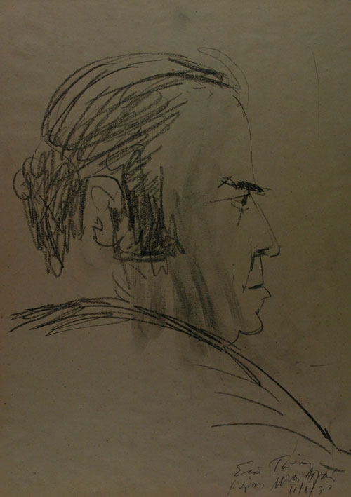Spiteris is depicted in profile to the right and up to shoulder height.