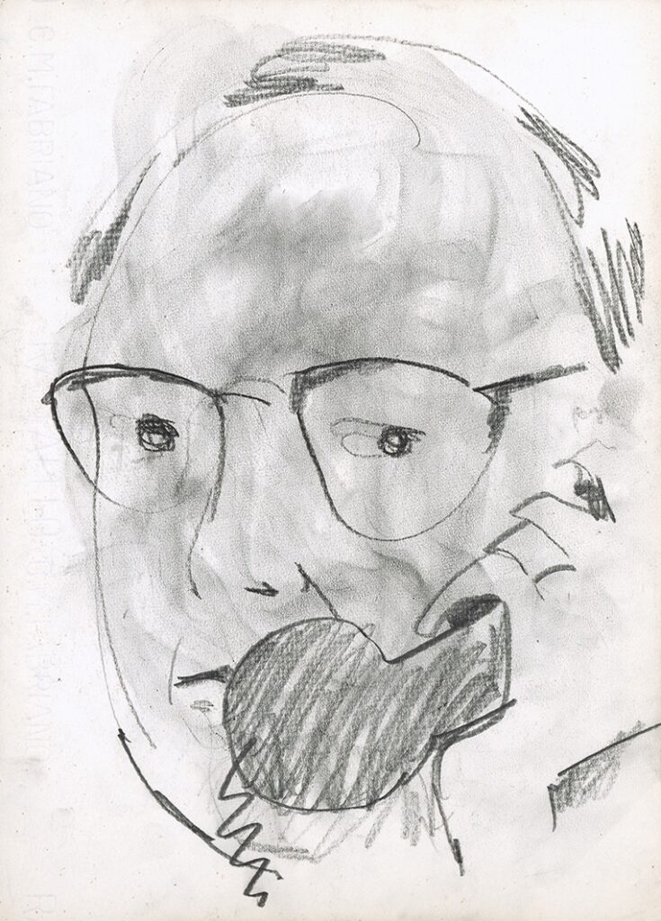 Tonis Spiteris is assigned to a 3/4 stance. He is wearing glasses and talking on the phone.