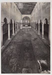 In the lower part of the work, a road is depicted in beige color, starting from the first level towards the depth, while left and right sharp strokes of color indicate an undefined landscape. The upper part occupies a blue-off-white sky.