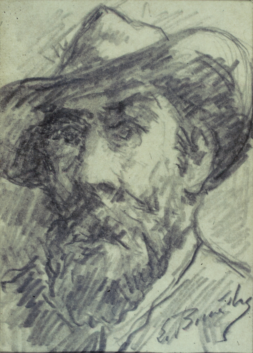 Depicted is a bearded man in a wide-brimmed hat. The face is turned 3/4 to the left and the gaze is firmly horizontal. Psychographic penetration.
