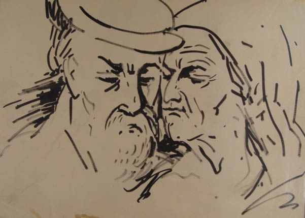 Portraits of an elderly couple are shown. The man is bearded and wears a cap. The woman rests on the man’s head, wears a headscarf and has her eyes closed.
