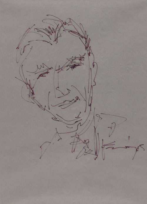 The form is rendered in front and up to the height of the shoulders. The design has a diagonal axis and is articulated with quick sharp lines.
