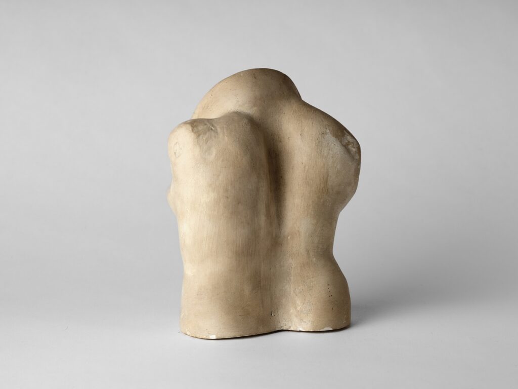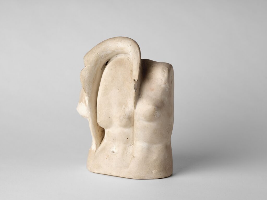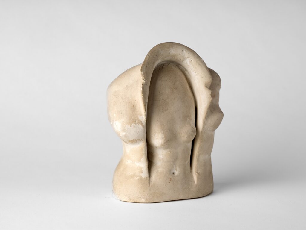 Female torso, which opens at the sternum area to reveal a second female torso. The rendering of the body is realistic. Poetic expression of the poetic and the absurd.