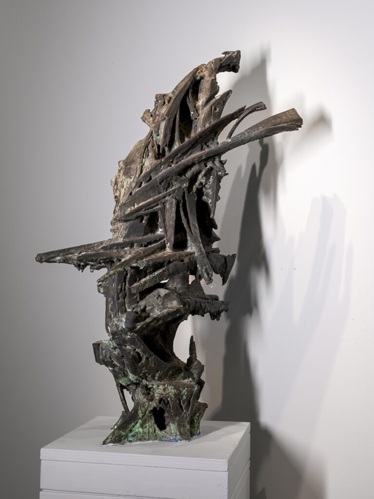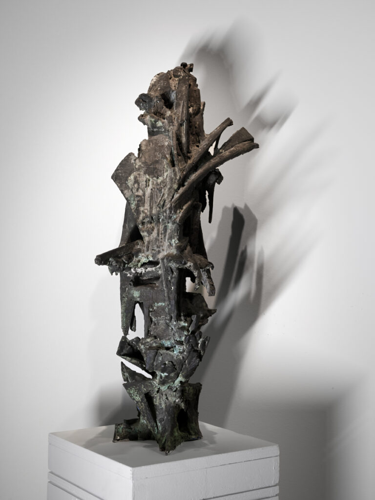 The sculpture consists of metal parts, which are composed in such a way as to allow the play of the solid volume with the void.