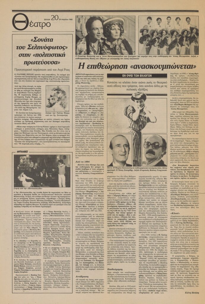 A clipping from the newspaper “To Vima”, dated April 28, 1985, featuring an article on the first exhibition by the reconstructed ancient Greek pediment that adorned the Roman temple of Apollo Sosianus in Rome.