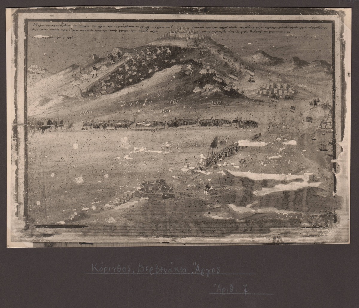A black-and-white photograph of a work by the folk artist Panagiotis Zografos, attached to a cardboard.