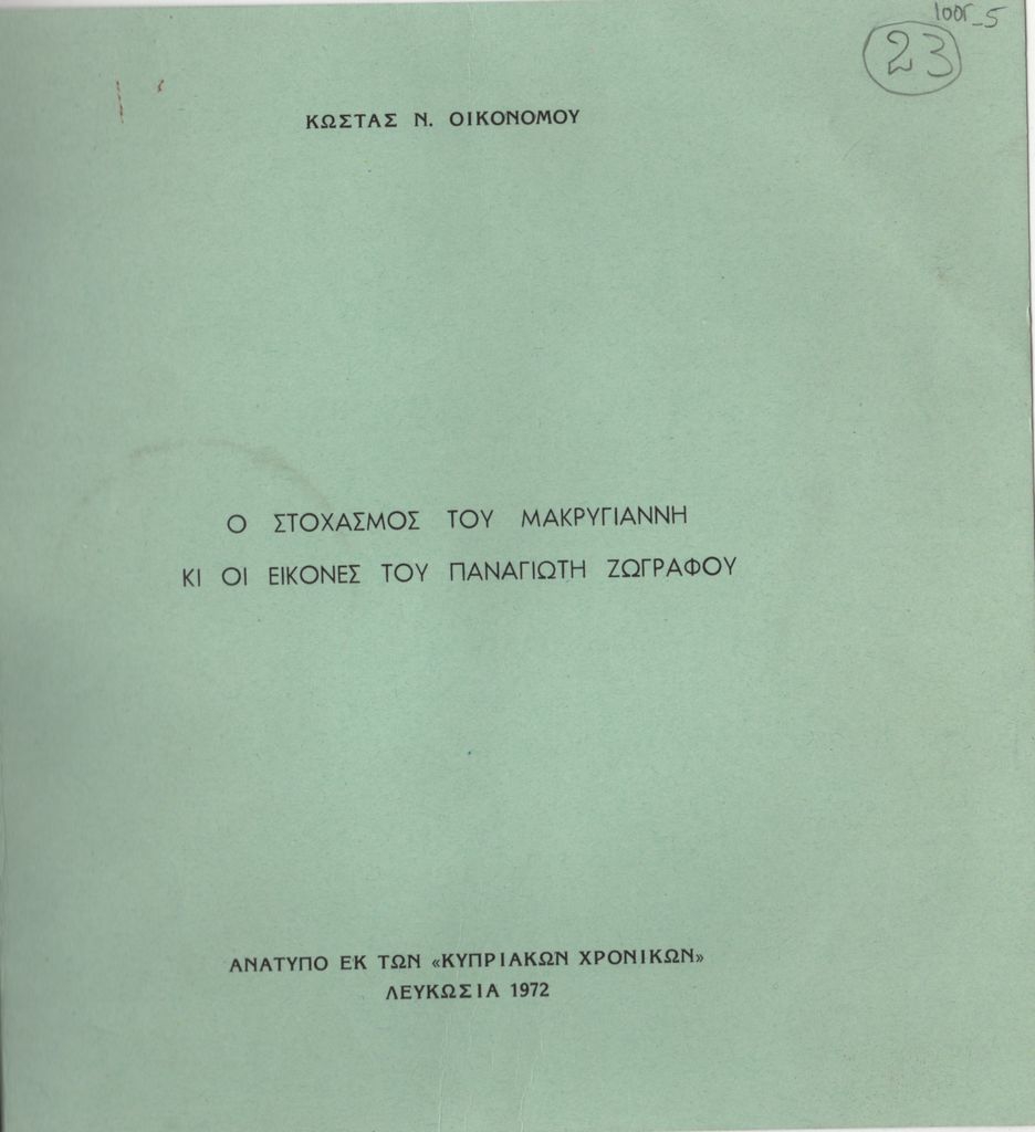 Cyprus 1700-2000: Adamantios Diamantis. Spiteris Archive. Traveling Painters in Cyprus 1700-1960