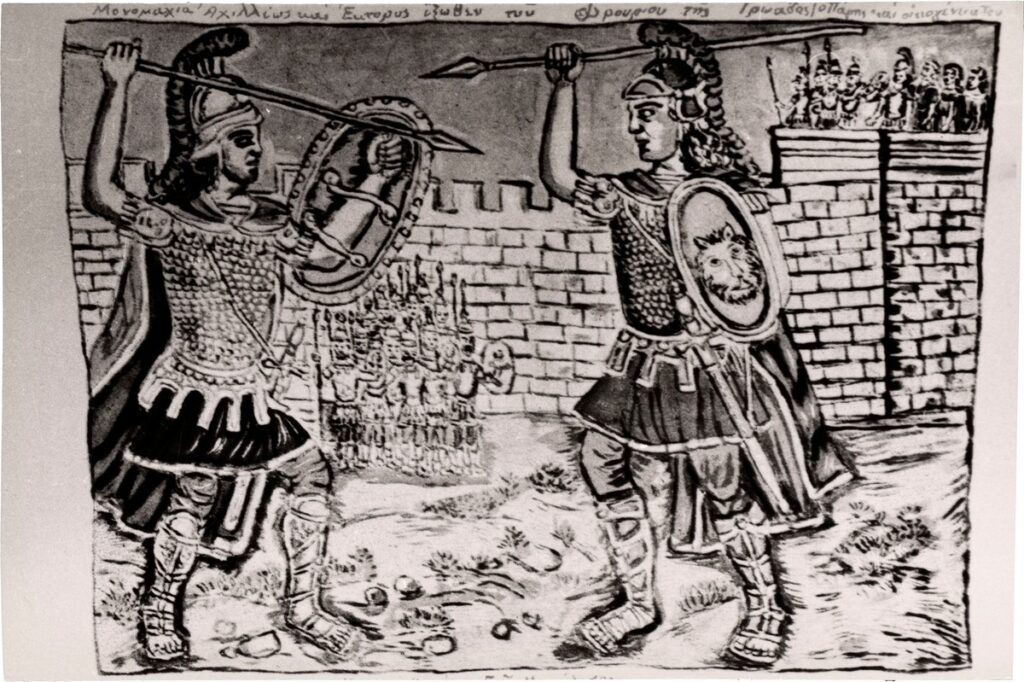 The Duel between Achilles and Hector outside the fortress of Troy. Paris and his family