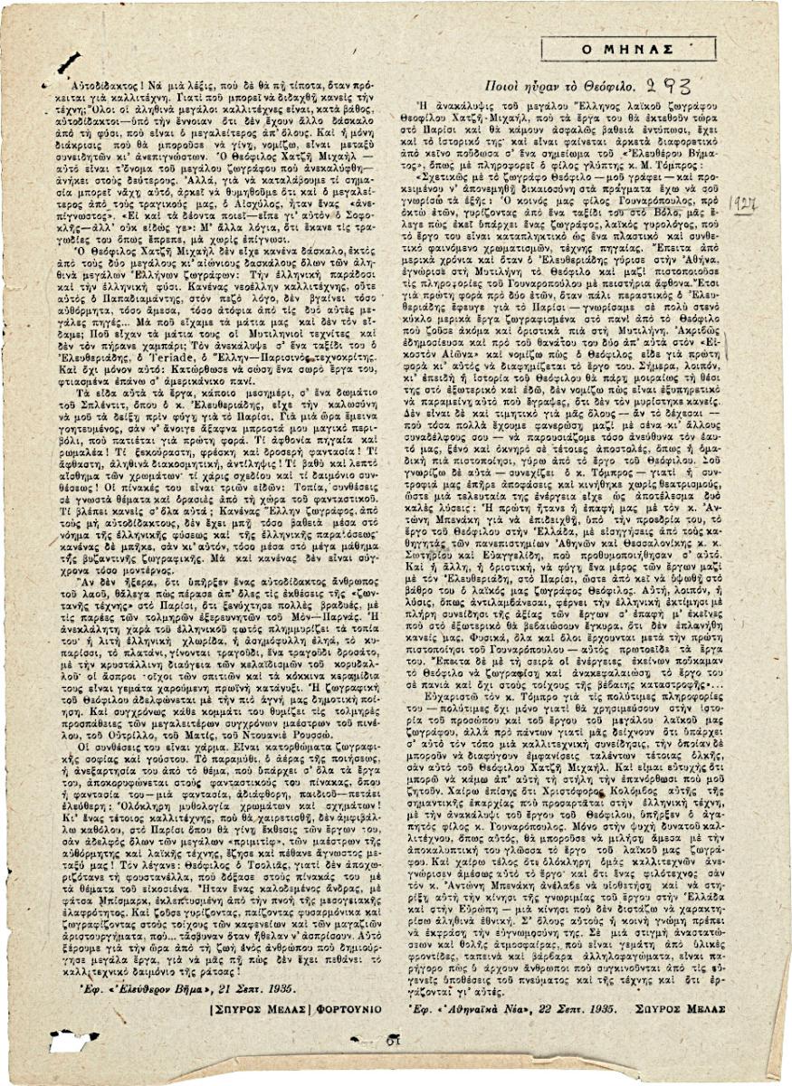 Evangelidis Dimitrios E. ; Makris Kitsos (1917 - 1988) ; Theofilos (Chatzimichail) (1871 - 1934)