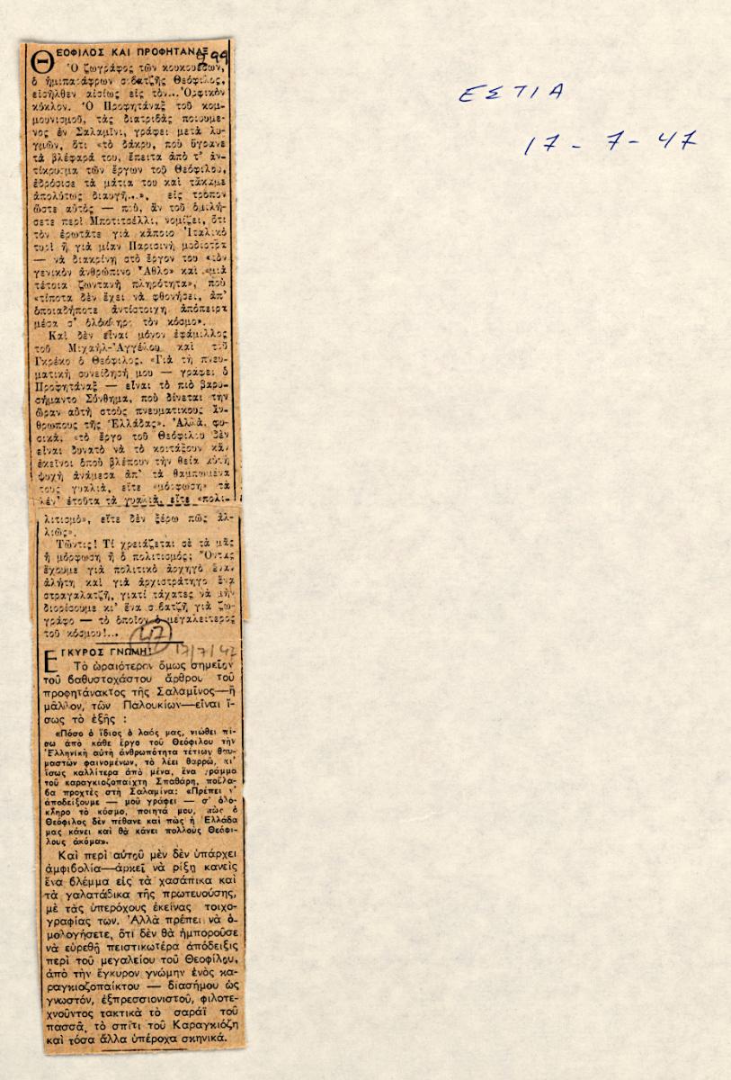 Evangelidis Dimitrios E. ; Makris Kitsos (1917 - 1988) ; Theofilos (Chatzimichail) (1871 - 1934)