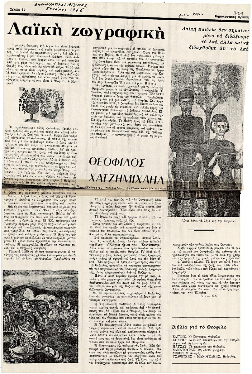 Paraskevaϊdis Miltis (1911 - 1999) ; Kanellis Orestis (1910 - 1979) ; Theofilos (Chatzimichail) (1871 - 1934) ; Eleftheriadis Takis (1911 - 1987) ; Eleftheriadis Stratis (1897 - 1983) ; Αποστόλος Γεραλής (1886 - 1983) ; Λουκάς Γεραλής (1875 - 1958) ; Protopatsis, Antonis (1897 - 1947) ; Γιάννης Μαρουδής ; Ιωσήφ Ραφτόπουλος ; Στρατής Αξιώτης (1907 - 1994) ; Νότης Εμμανουήλ ; Θεόδωρος Παπαχαραλάμπους ; Σίμος Χουτζαίος (1873 - 1967) ; Πελαγία Κούμπα ; Anatoleas, Phoebus (1895 - 1979) ; Μαριάνθη Πρίμου ; Κλεάνθης Καραφύλλης ; Μιχαήλ Χατζόπουλος ; Zelli, Anta ; Κρυσταλλίδη ; Μ. Βράντη ; Μ. Τσαγκαράκης ; Π. Βασιλείου ; Αθ. Λημναίος ; Κ. Κιρλής ; Γεώργιος Μπούκας (1879 - 1941) ; Αντωνακάκης