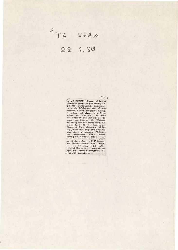 1st Art Symposium, Thessaloniki 12-14 October 1984, Announcements