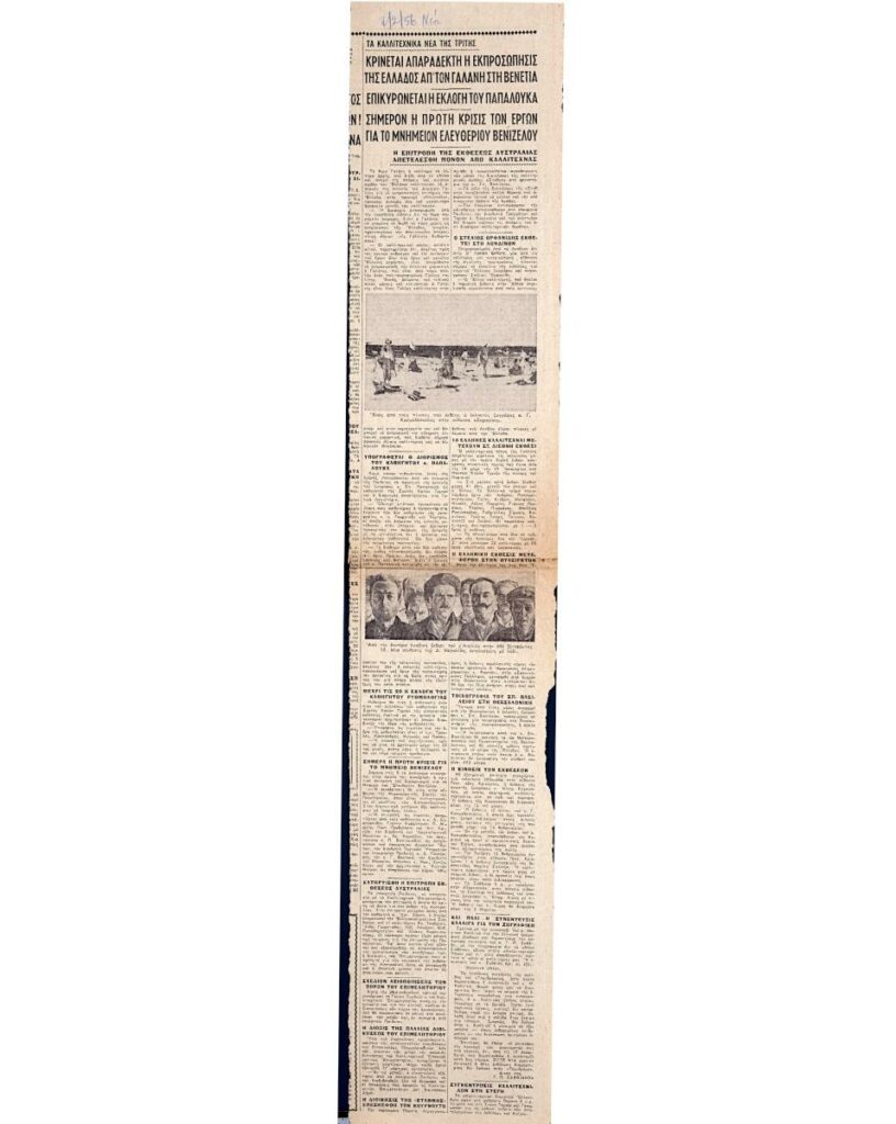 A clipping from the newspaper “Ta Nea”, dated February 7, 1956, featuring an art column.