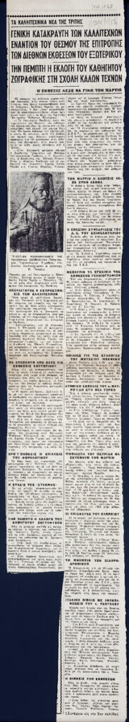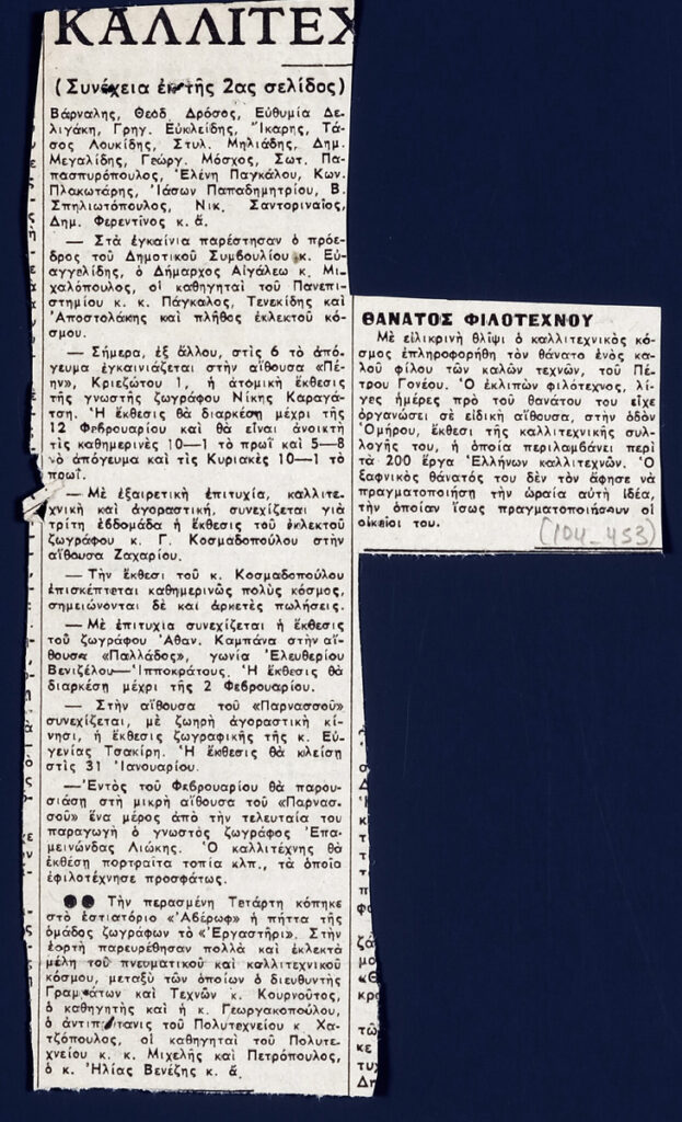 A clipping from the newspaper “Ta Nea”, dated January 24, 1956, featuring an art column.