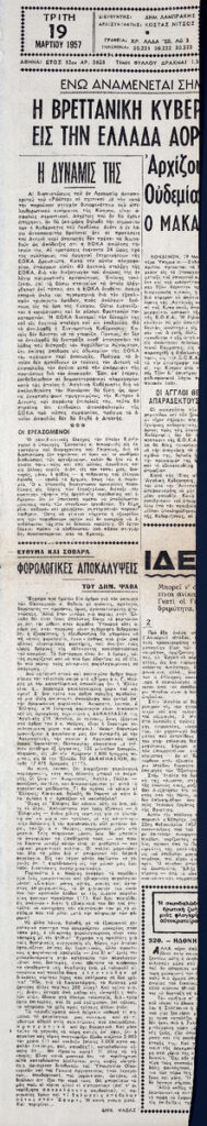 A clipping from the newspaper “Ta Nea”, dated March 19, 1957.