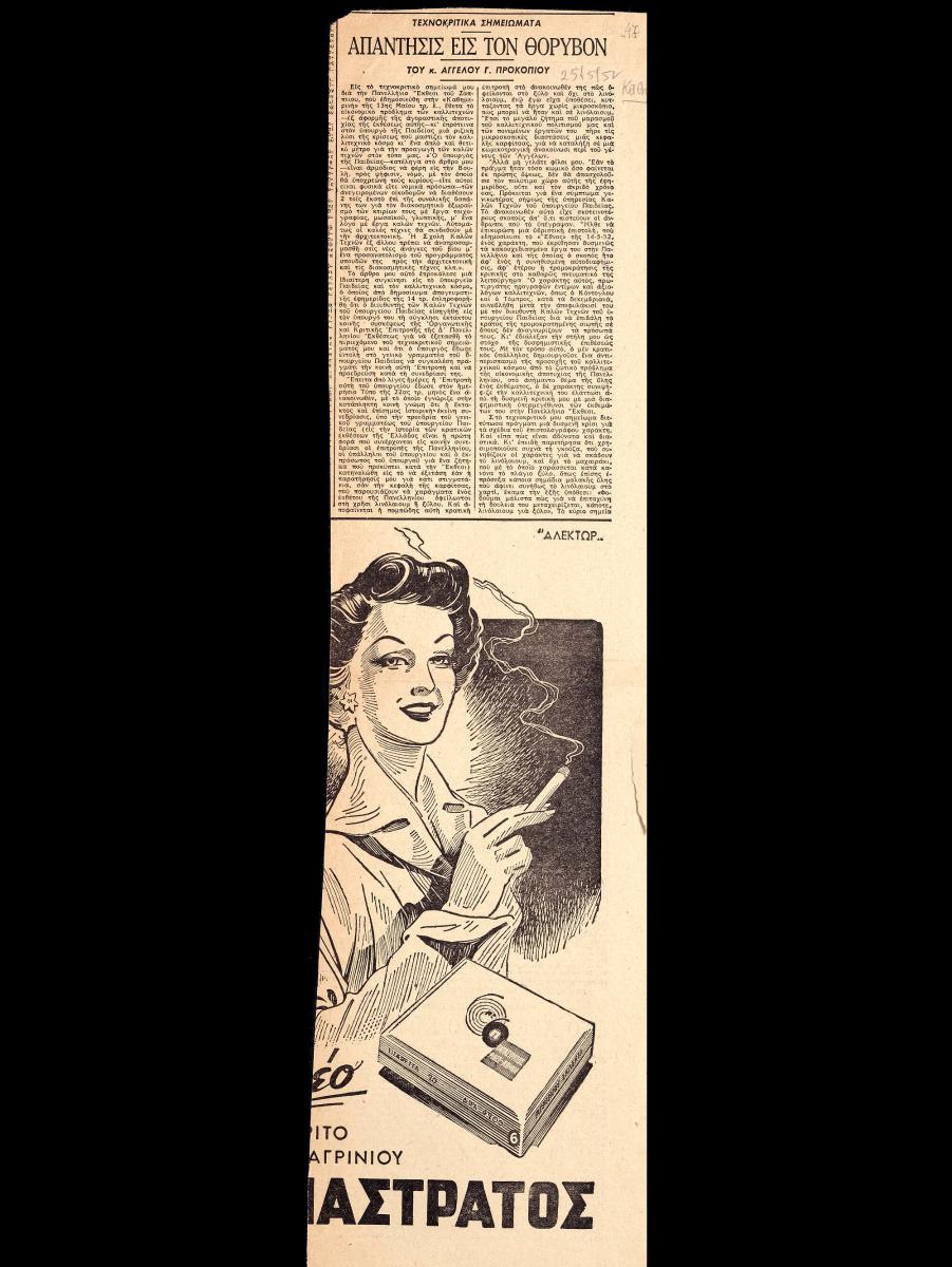 A clipping from the newspaper “I Kathimerini”, dated May 25, 1952.