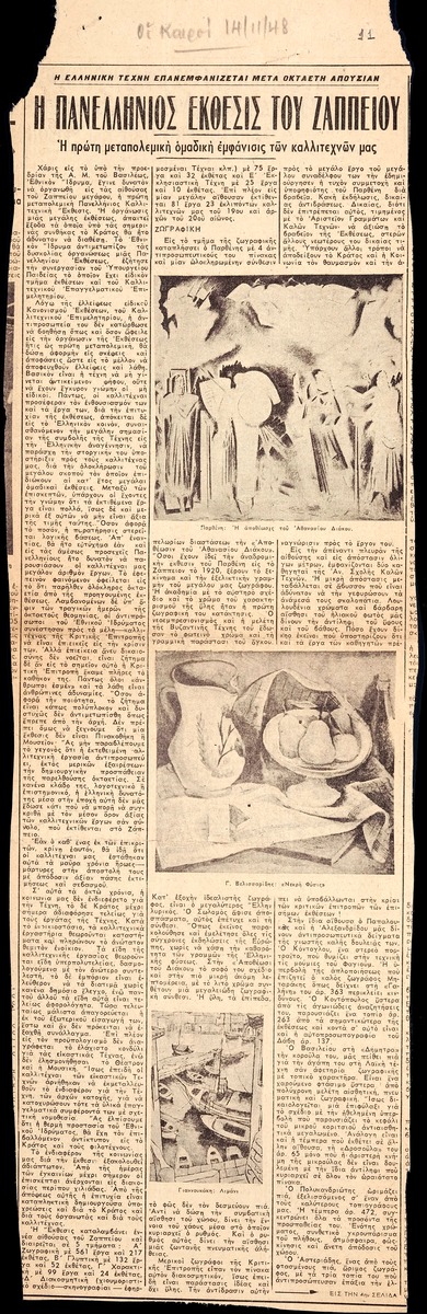 A clipping from the newspaper “Kairoi”, dated November 14, 1948.