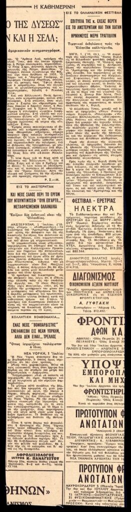 A clipping from the newspaper “I Kathimerini”, dated July 2, 1957.