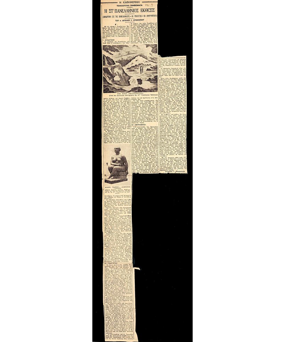 Spiteris Tonis (1910 - 1986) ; Miliadis Giannis (1895 - 1975) ; Papanoutsos Evangelos (1900 - 1982) ; Vassiliou Spyros (1902 - 1985) ; Evangelidis Dimitrios E. ; Maggiorou Loukia (1914 - 2008) ; Tassos (Anastasios Alevizos) (1914 - 1985) ; Chatzidakis Manolis (1909 - 1998) ; Hatzikyriakos-Ghika Nikos (1906 - 1994) ; Katsimpalis, Georgios (1899 - 1978) ; Moralis Yannis (1916 - 2009) ; Gounaropoulos Georgios (1889 - 1977) ; Papaloukas Spyros (1892 - 1957) ; Spyropoulos Yannis (1912 - 1990) ; Kalligas Marinos (1906 - 1985) ; Δημήτρης Ψαθάς (1907 - 1979) ; Kapralos Christos (1909 - 1993) ; Frantziskakis Errikos (1908 - 1958) ; Sochos Antonios (1888 - 1975) ; Bouzianis Giorgos (1885 - 1959) ; Vrasidas Tsouchlos (1904 - 1981) ; Vakalo Giorgos (1902 - 1991) ; Kitsikis Konstantinos ; Georgiadis Andreas, Kris (1892 - 1981) ; Chrysochoidou, Titsa (1906 - 1990) ; Nikos Nikolaou (1909 - 1986) ; Pappas Giannis (1913 - 2005) ; Georgios Kosmadopoulos (1895 - 1967) ; Spahis Angelos (1903 - 1963) ; Μίμης Καραγάτσης (1908 - 1960) ; Άγγελος Θεοδωρακόπουλος (1882 - 1965) ; Π. Τσολάκου ; Αλέκος Πατσιφάς ; Κ. Βασιλειάδης ; Ρένος Κουτσούρης