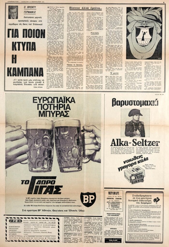 A clipping from the newspaper “Apogevmatini”, dated February 20, 1971.