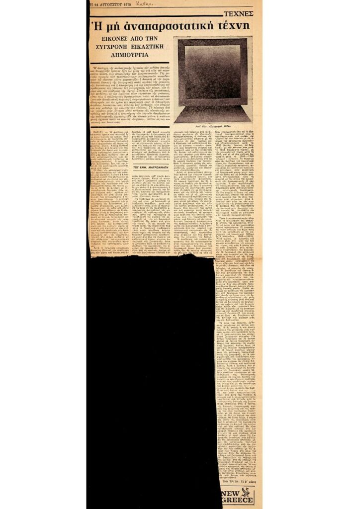 A clipping from the newspaper “I Kathimerini”, dated August 24, 1975, featuring an article on the visual arts.