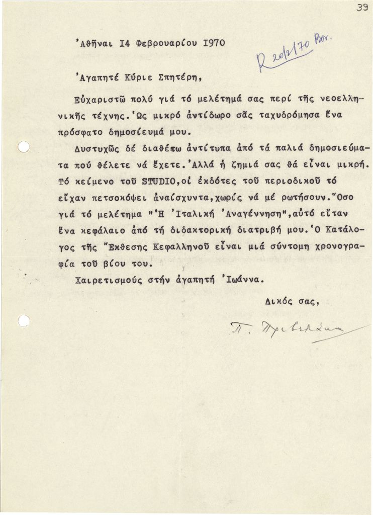 Prevelakis Pantelis (1909 - 1986) - Sender