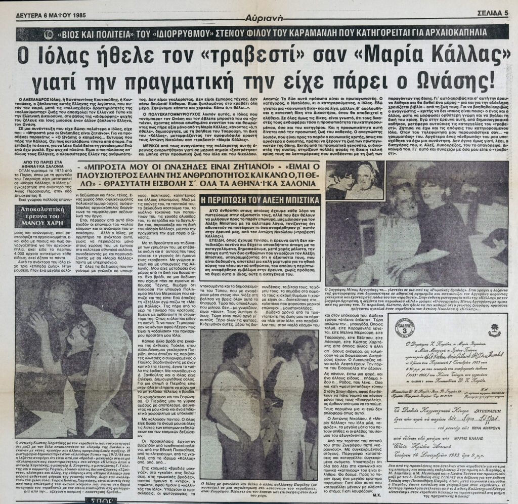 Source: Εφημερίδα "Αυριανή", 06/05/1985