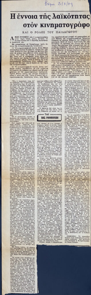 A clipping from the newspaper “To Vima”, dated August 21.